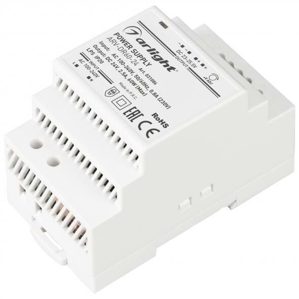 Блок питания ARV-DR60-24 (24V, 2.5A, 60W) (Arlight, IP20 DIN-рейка) | 031086 Arlight