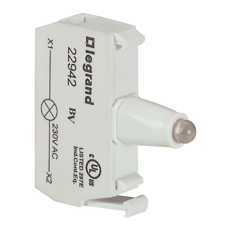 Блок подсветки для индикаторных кнопок и диффузоров 230 В~ зеленый под винт от Legrand (артикулы 022942 и 22942) предназначен для визуальной индикации состояния оборудования через светодиодную подсветку. Устройство совмещает функциональность и надежность в компактном решении, подходящем для монтажа в панели управления.