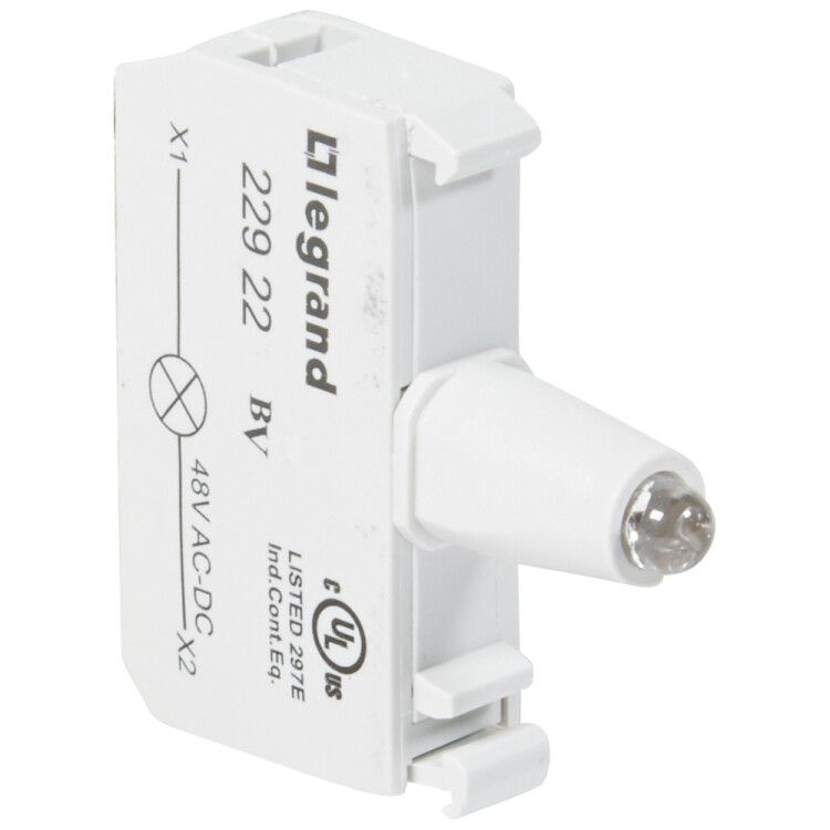 Блок подсветки для индикаторных кнопок и диффузоров 48В переменного/постоянного тока, под винт, зеленый от Legrand (артикул 022922) предназначен для равномерной подсветки индикаторных элементов в устройствах управления на базе серии Osmoz. Подходит для установки в панели оборудования, где требуется четкая визуализация состояния через зеленую подсветку.