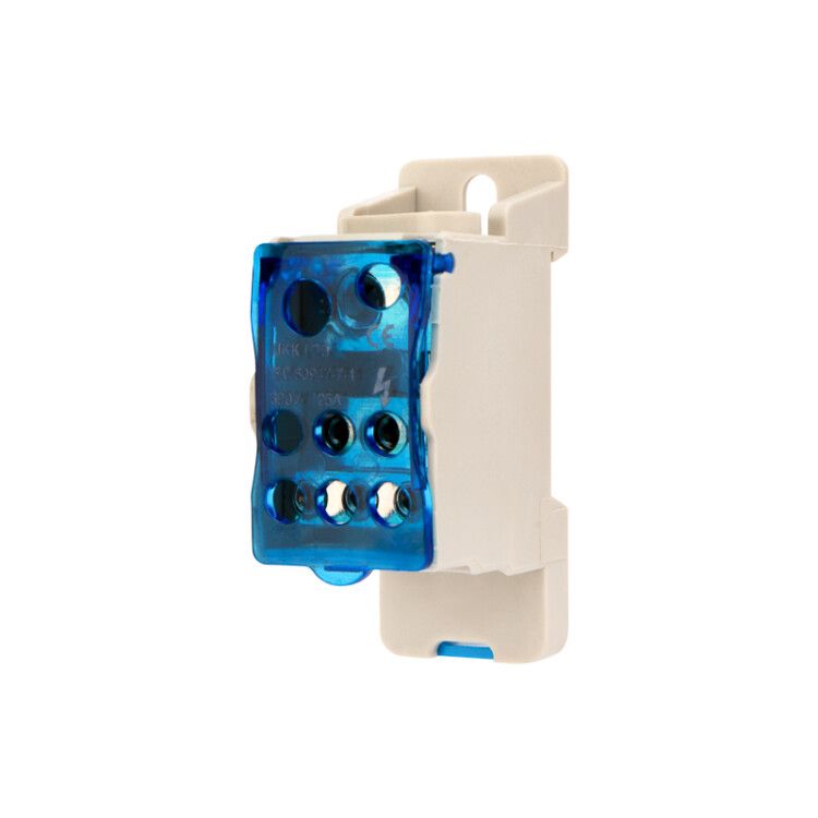 Блок распределительный РБД-125А на DIN-рейку крепится на стандартную DIN-рейку шириной 35 мм. Установка занимает меньше минуты: просто защёлкивается на направляющие. Для монтажа на панель предусмотрены отверстия - можно закрепить болтами, если рейка недоступна.