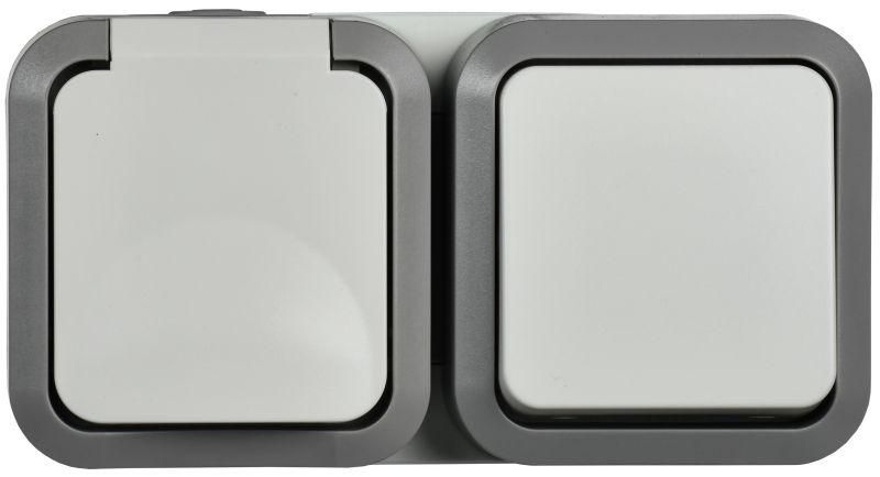 Устройство сочетает в себе одну розетку с заземляющим контактом и одноклавишный выключатель OFF. Назначено для подключения оборудования, требующего защиты от внешних воздействий. Применяется там, где обычные бытовые розетки недопустимы: в сырых помещениях, на улице под навесом, в цехах, на складах, в теплицах и хозяйственных постройках. Благодаря защите IP55, блок можно использовать даже при периодическом попадании воды из бокового направления.