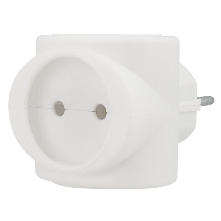 Разветвитель электрический 220 В 6 А биметаллический белый вставляется в стандартную евророзетку (Schuko) и не требует инструментов для установки. Корпус круглой формы обеспечивает плотное прилегание к розетке, но занимает больше места рядом с другими вилками. Поскольку кабель отсутствует, устройство нельзя использовать как удлинитель - оно работает только в точке подключения. Для безопасной работы используйте только в розетках с исправной проводкой и без перегрузки.