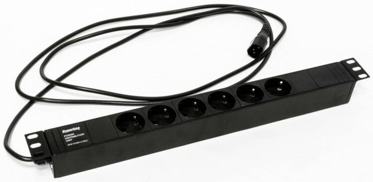 Блок розеток для 19 шкафов, горизонтальный, 6 Schuko (10A), 250В, кабель питания 3х1.0мм2, длина 2.5 м, с вилкой IEC 320 C14, 482.6x44.4x44.4мм (ДхШхВ) - 397027 Hyperline