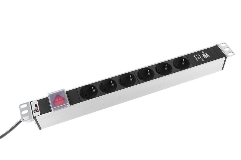 - Блок розеток с выключателем и USB-портами 6 Schuko 16А алюминий 19 дюймов шнур 3м от Rem (артикул 1893557) - оптимален для внутренней фиксированной установки, а не для перемещаемых решений