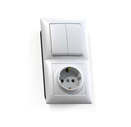 Блок комбинированный скрытой установки БКВР-412 от Кунцево-Электро сочетает двухклавишный выключатель и розетку со заземлением в одном корпусе - удобное решение для монтажа в стене, где требуется управление освещением и подключение бытовых приборов одновременно.