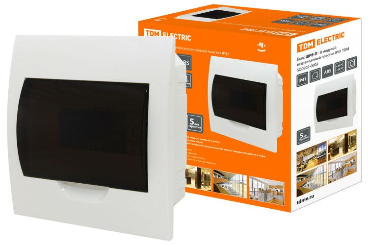 - ЩРВ-П-8 модулей IP41 от TDM ELECTRIC совместим с большинством современных модульных устройств - проверяйте только глубину и ширину