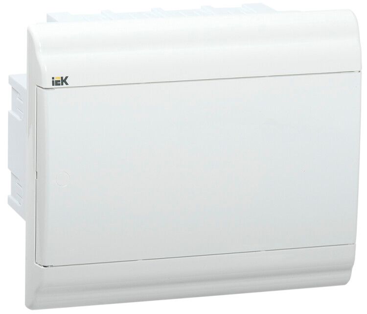 Бокс ЩРВ-П-9 модулей встраиваемый пластиковый с белой дверью IP41 от IEK (ИЭК), артикул mkp82-v-09-wd-41-20, предназначен для скрытой установки в стену и защиты модульных аппаратов в распределительных щитках осветительных сетей.