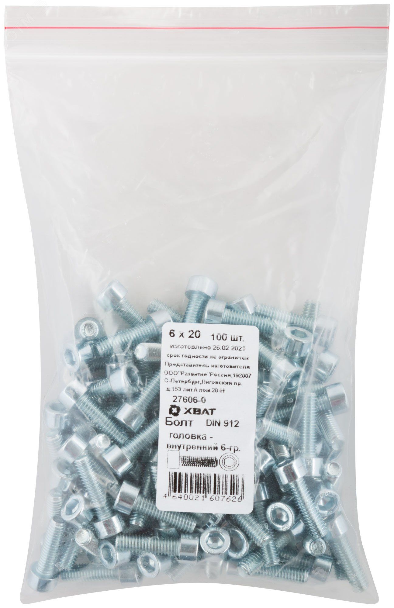 | Болт DIN912 М6х20 внутренний шестигранник оцинкованный (100 шт) - 27606-0 | 13.02.2026 | Под заказ | 365,23 ₽ | уп. | от 30 дней |