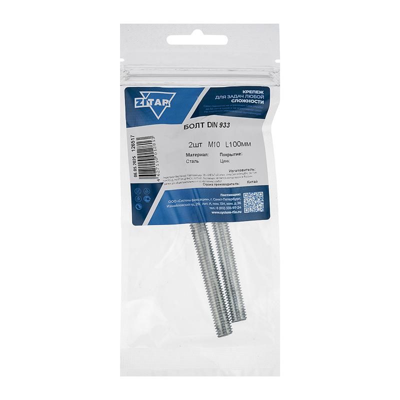Болт с шестигранной головкой М10х100 DIN 933 оцинк. (уп.2шт) Tech-Krep/Zitar 126517 не поставляется, возможно товар снят с производства, по запросу, наши инженеры помогут подобрать аналоги, замены.