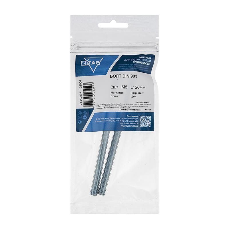 | Болт с шестигранной головкой М8х120 DIN 933 оцинк. (уп.2шт) Zitar 126506 | 13.03.2026 | Под заказ | 44,71 ₽ | уп. 2 шт. | от 13 дней |