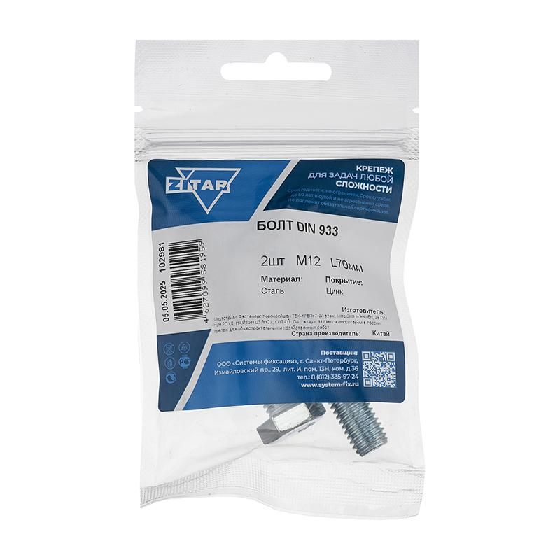 | Болт с шестигранной головкой М12х70 DIN 933 оцинк. (уп.2шт) Tech-Krep/Zitar 102981 | 13.03.2026 | Под заказ | 65,88 ₽ | уп. 2 шт. | от 13 дней |
