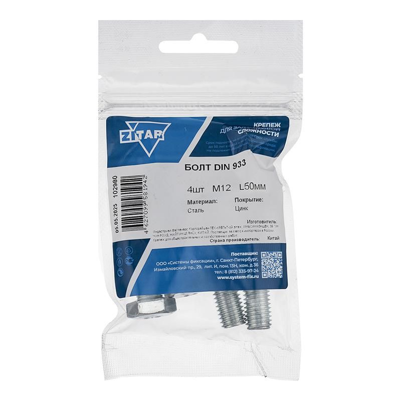 | Болт с шестигранной головкой М12х50 DIN 933 оцинк. (уп.4шт) Tech-Krep/Zitar 102980 | 13.03.2026 | Под заказ | 99,95 ₽ | уп. 4 шт. | от 13 дней |
