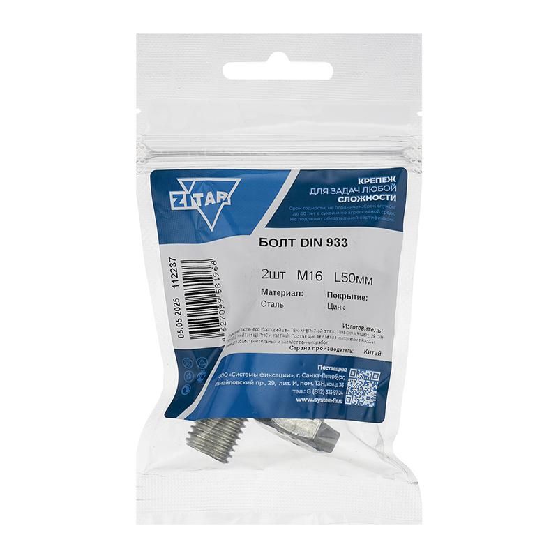 | Болт с шестигранной головкой М16х50 DIN 933 оцинк. (уп.2шт) Tech-Krep/Zitar 112237 | 13.03.2026 | Под заказ | 94,14 ₽ | уп. 2 шт. | от 13 дней |