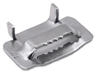 Скрепа для ленты NB 20 (упаковка 100 штук) от НИЛЕД предназначена для надёжного крепления стальной монтажной ленты F 207 и F 107 на анкерных опорах воздушных линий электропередачи. Этот элемент обеспечивает прочную фixацию без необходимости сварки или болтовых соединений.