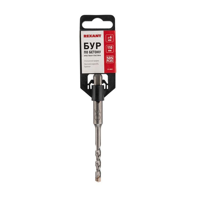 Бур по бетону 6 мм x 110 мм крестовая пластина SDS PLUS от Rexant - надёжная оснастка для сверления точных отверстий в бетоне, кирпиче и камне с помощью перфоратора. Артикул 91-0801 совмещает компактность, прочность и совместимость с популярными моделями инструментов.