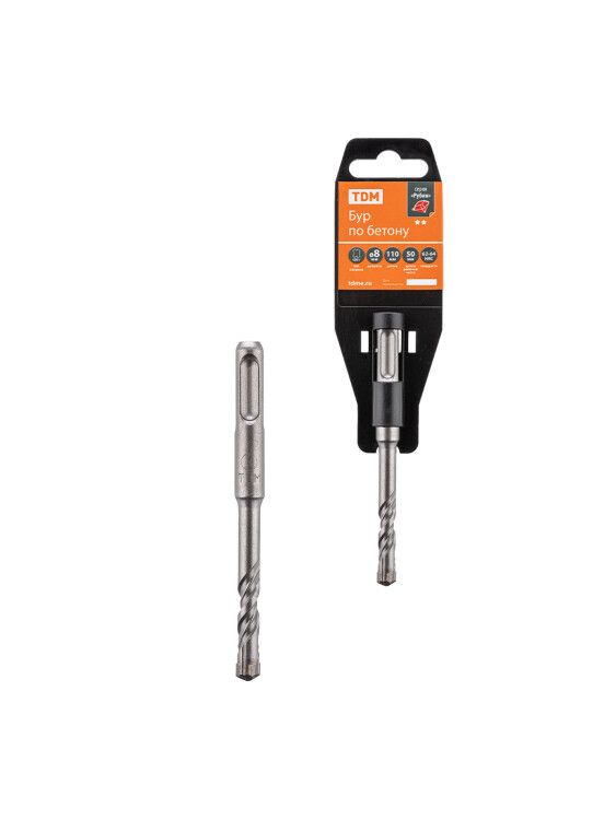 Бур по бетону 8x110x50 мм SDS-Plus от TDM ELECTRIC (арт. sq1094-0204) - сменный рабочий элемент для сверления отверстий в твёрдых материалах, совместимый с перфораторами с патроном SDS-Plus. Подходит для точного и надёжного бурения в бетоне, кирпиче и натуральном камне.