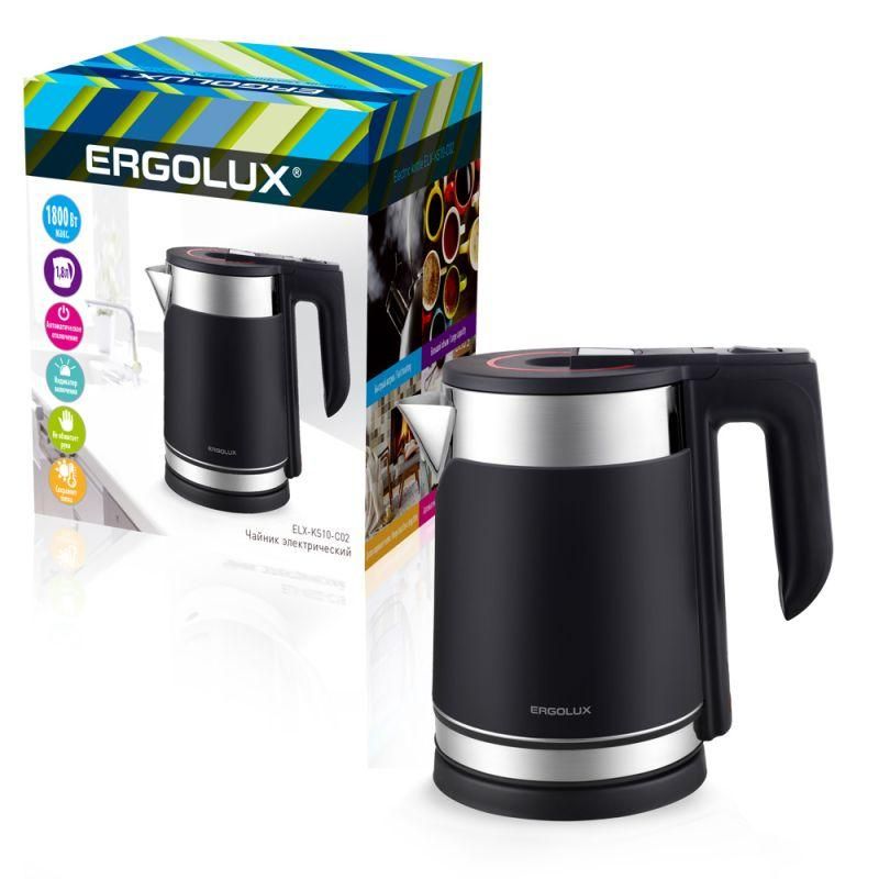 Чайник электрический ELX-KS10-C02 нерж. сталь/пластик 1.8л 220-240В 1800Вт черн. Ergolux 15328