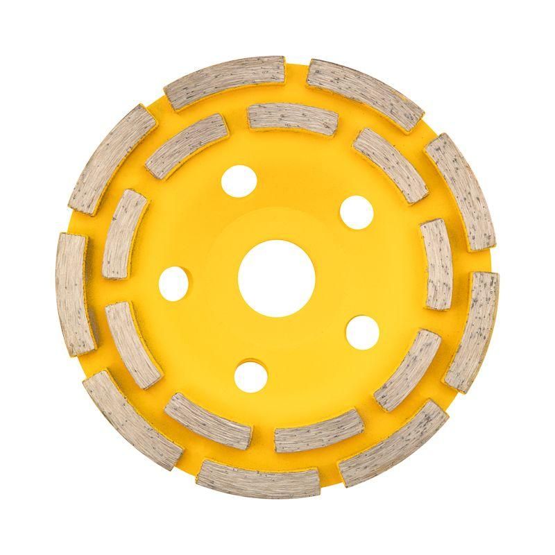 Чашка алмазная шлифовальная двурядная 125х22,2 мм от Kranz (арт. kr-90-0151) предназначена для точной и быстрой обработки твёрдых поверхностей - бетона, гранита и других строительных камней - с помощью угловой шлифмашины. Двухрядная структура алмазного слоя обеспечивает высокую скорость удаления материала без необходимости охлаждения водой.