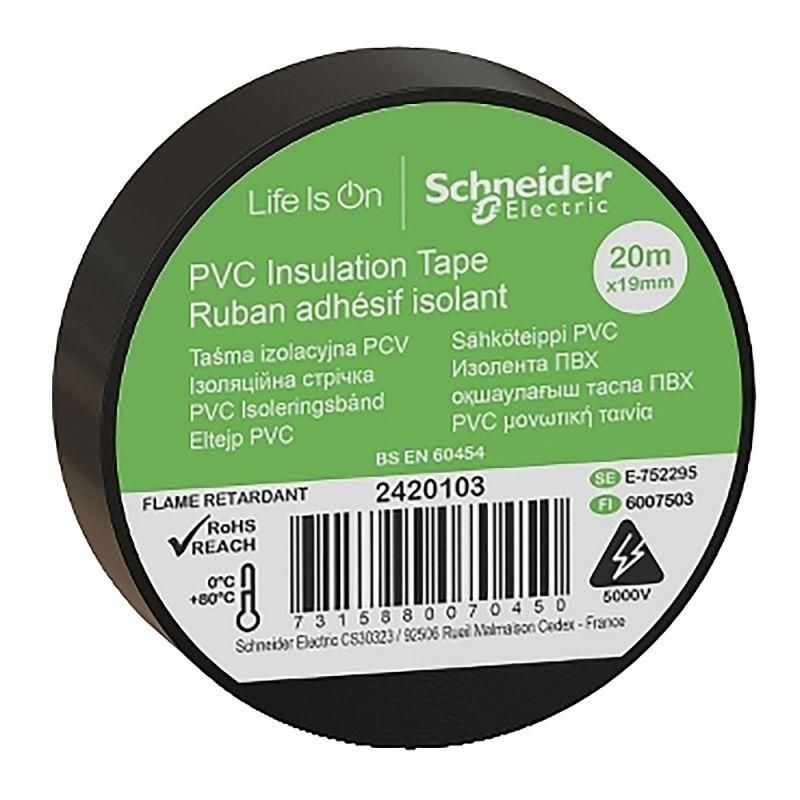Изолента ПВХ 19 мм х 20 м черная от Schneider Electric - надежный материал для изоляции электрических соединений в бытовых и промышленных условиях. Артикул imt38203 обеспечивает устойчивую защиту проводов при температуре от –15 до +80 C.