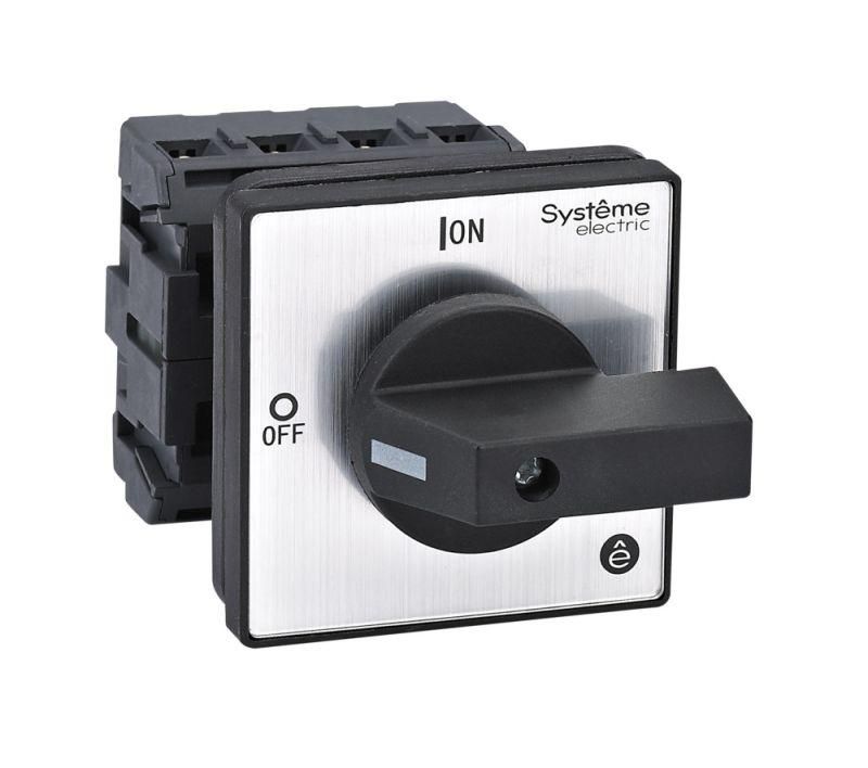 Монтаж на дверцу или DIN-рейку|Закрытое исполнение в корпусе IP65|Возможность блокировки рукоятки навесными замками|Большое изоляционное расстояние, гарантирующее надежное разъединение контактов|Высокий механический ресурс работы