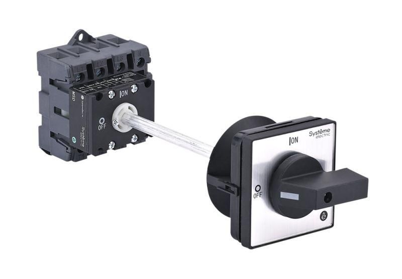 Монтаж на дверцу или DIN-рейку, закрытое исполнение в корпусе IP65, возможность блокировки рукоятки навесными замками, большое изоляционное расстояние, высокий механический ресурс работы