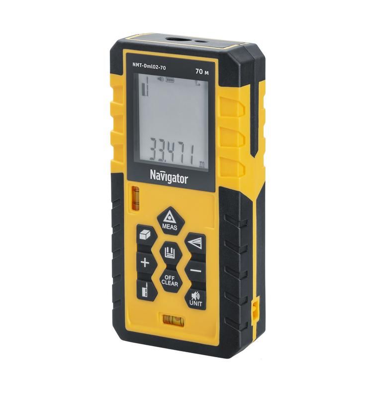 Дальномер 70 м NMT-Dml02-70 от бренда Navigator - компактный измеритель расстояний на основе лазерной технологии, предназначенный для точного замера до 70 метров в условиях строительства, ремонта и промышленного обслуживания. Артикул 93291 соответствует серии NMT-DML, которая отличается надежностью и простотой эксплуатации.
