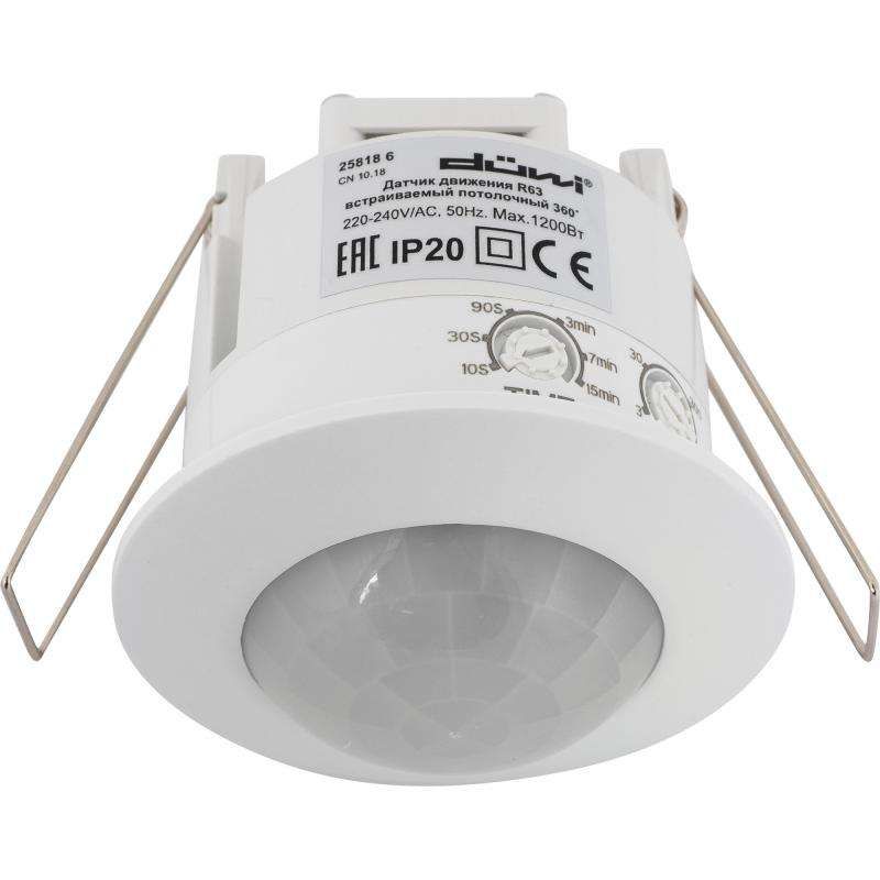 Датчик движения потолочный, встраиваемый (под R63), DDV-02, 180, 10-420с, 6м, 1200Вт, IP20, белый, 25818 6, duwi