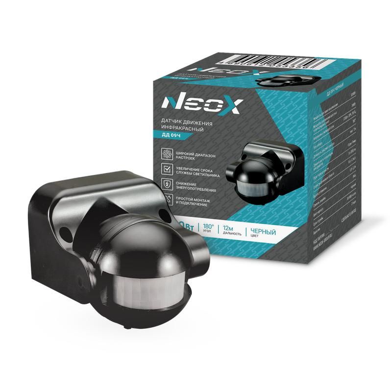Датчик движения инфракрасный ДД 09Ч 1200Вт 180 гр.12м IP44 черный NEOX - 4690612053356