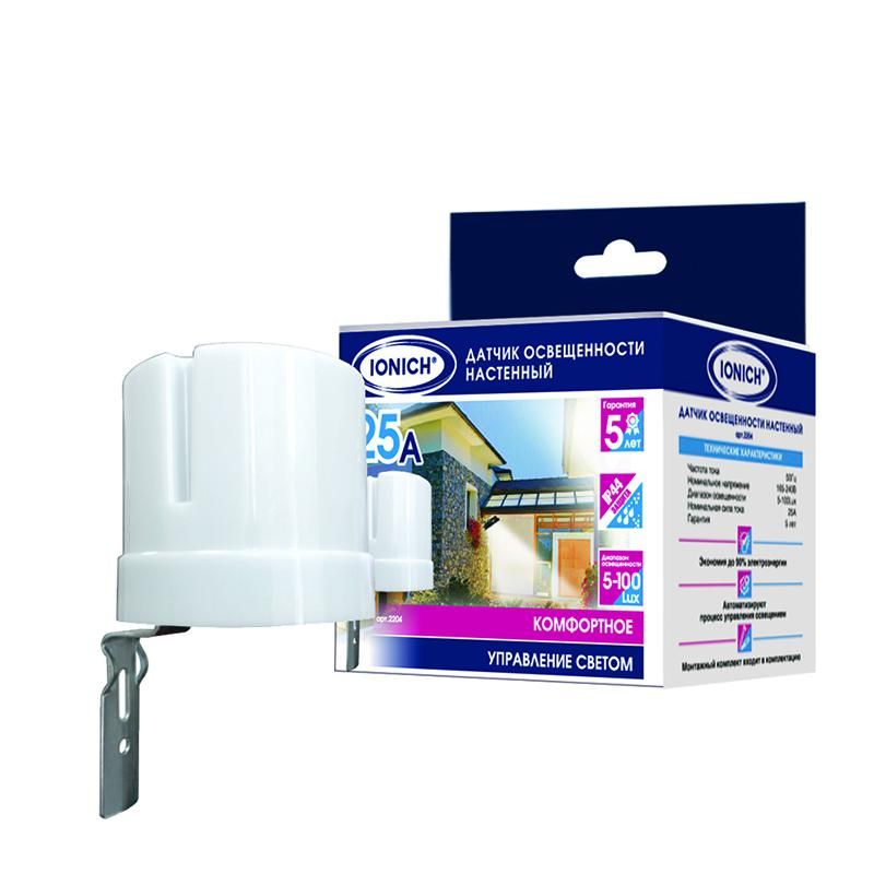 | Датчик освещенности настенный 25А 5-100 Lux бел. IONICH 2204 | 24.02.2026 | 56 шт. | 412,32 ₽ | шт. | от 1 дня |
