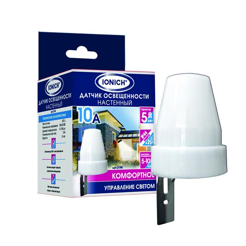 | Датчик освещенности настенный 10А 5-100 Lux бел. IONICH 2198 | 24.02.2026 | 56 шт. | 298,64 ₽ | шт. | от 1 дня |