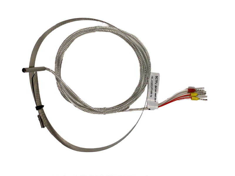 Датчик монтируется путём механического прижатия к поверхности трубы. Для установки требуется зажим или хомут, который фиксирует датчик плотно к трубе. Кабель подключается к контроллеру или регистратору, поддерживающему вход PT1000 с трёхпроводной схемой. Убедитесь, что ваша система управления принимает сигнал именно PT1000 - не PT100 или термопара. Монтаж возможен только на гладких, чистых металлических поверхностях без масла, ржавчины или изоляции.
