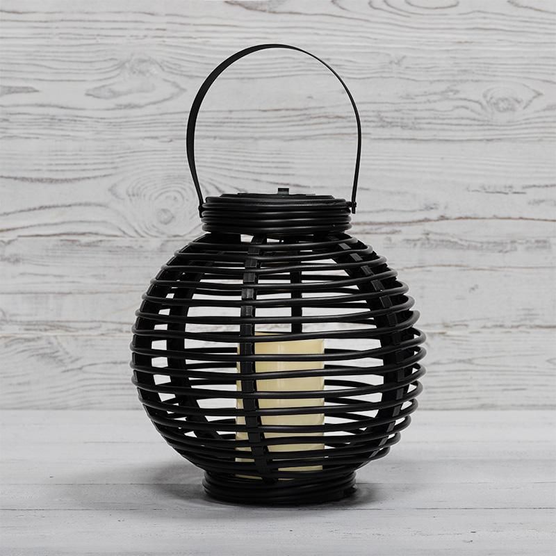 Декоративный домашний фонарь на солнечной батарее 20х20х22 см, черный плетеный корпус, теплый белый цвет свечения NEON-NIGHT - 501-143