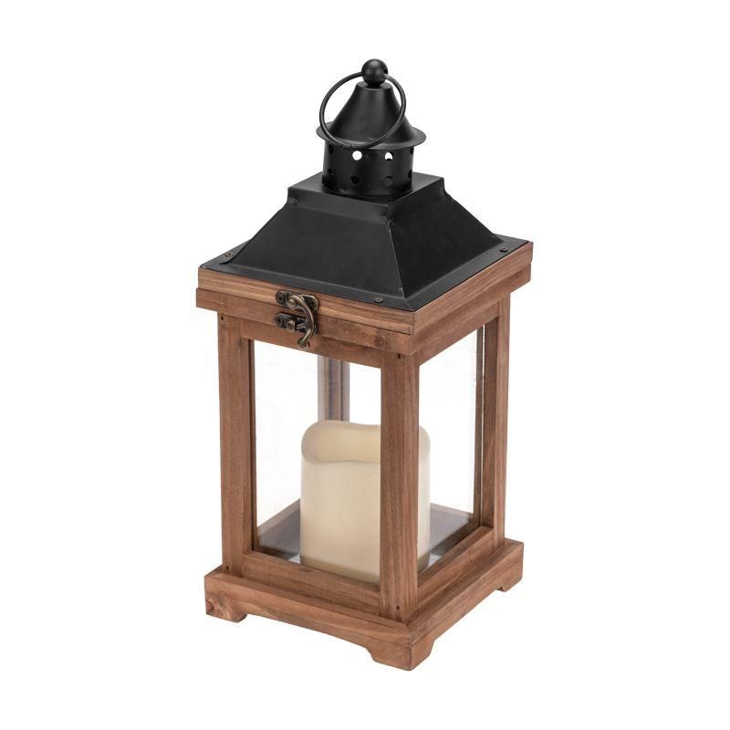 Декоративный фонарь со свечкой корпус из дерева размер 14х14х35cм цвет теплый белый - 513-075 NEON-NIGHT