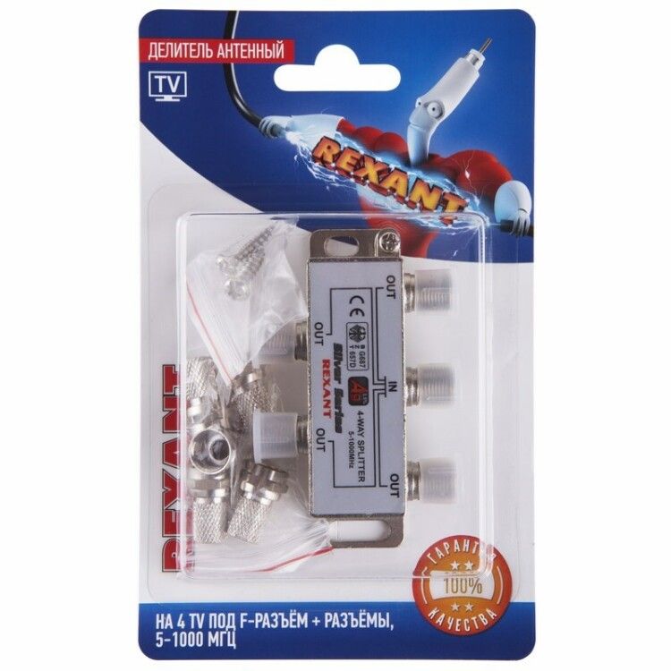 Делитель антенный F-типа на 4 TV + F-разъемы 5-1000МГц блист. Rexant 06-0047-C MEET