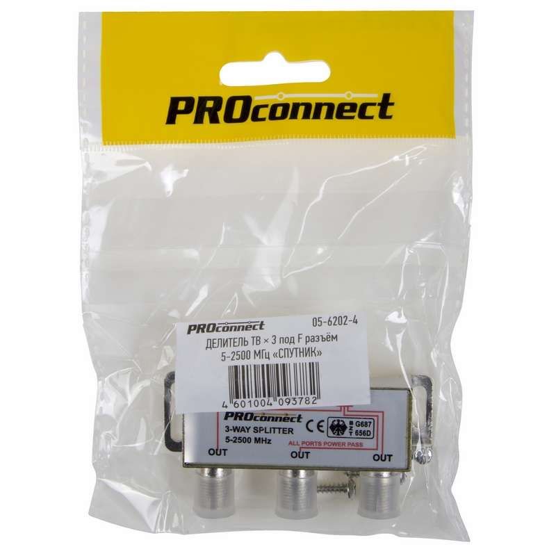 | Делитель ТВ х 3 под F разъём 5-2500 МГц "Спутник" PROCONNECT 05-6202-4 | 27.02.2026 | 4 шт. | 249,16 ₽ | шт. | от 3 дней |