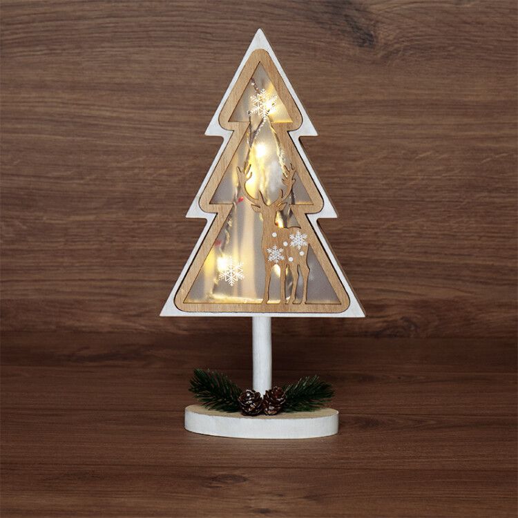 Выберите эту деревянную фигурку с подсветкой "Елка на подставке", чтобы создать уютную и праздничную атмосферу в вашем доме во время зимних праздников.