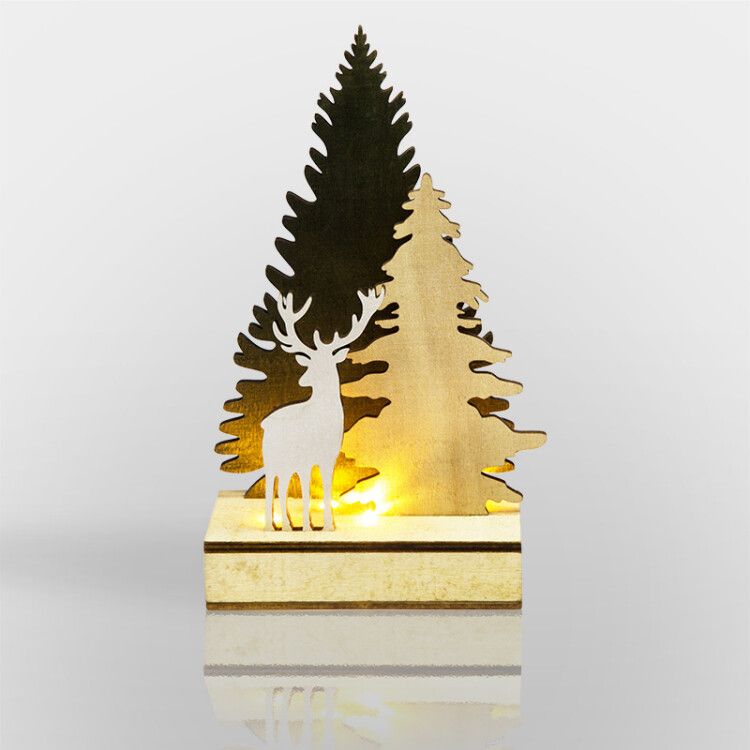 Деревянная домашняя фигурка с подсветкой Елочка оленем 12*6*21,5 см - 504-002 NEON-NIGHT