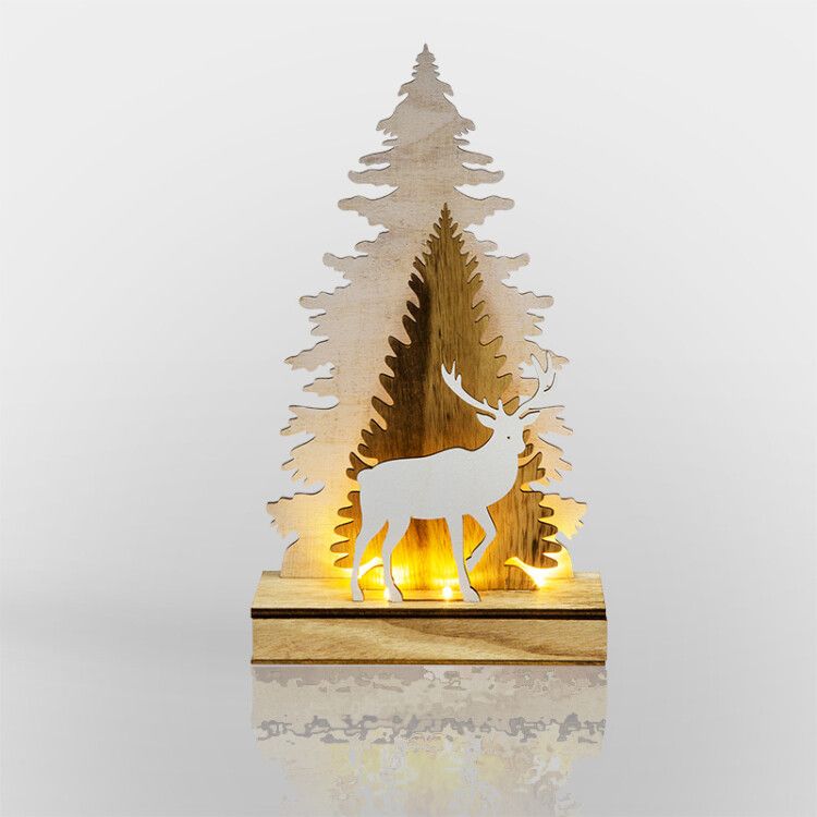 Деревянная домашняя фигурка с подсветкой Елочка оленем 18*7*29 см - 504-001 NEON-NIGHT