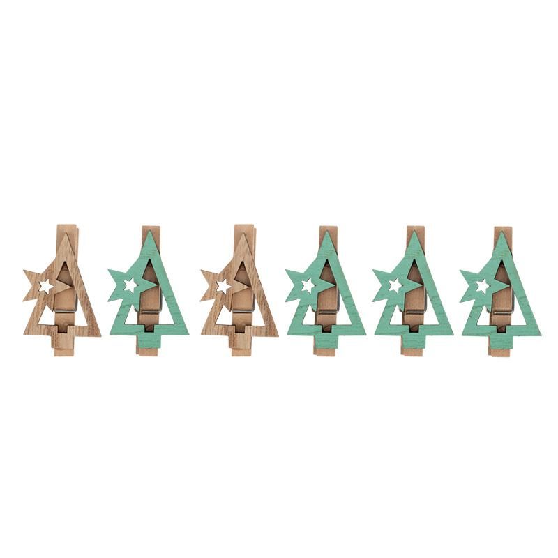 Деревянные домашние прищепки Новогодняя ель 14.5x4.5x1.6 cм, 6 шт. NEON-NIGHT - 504-031