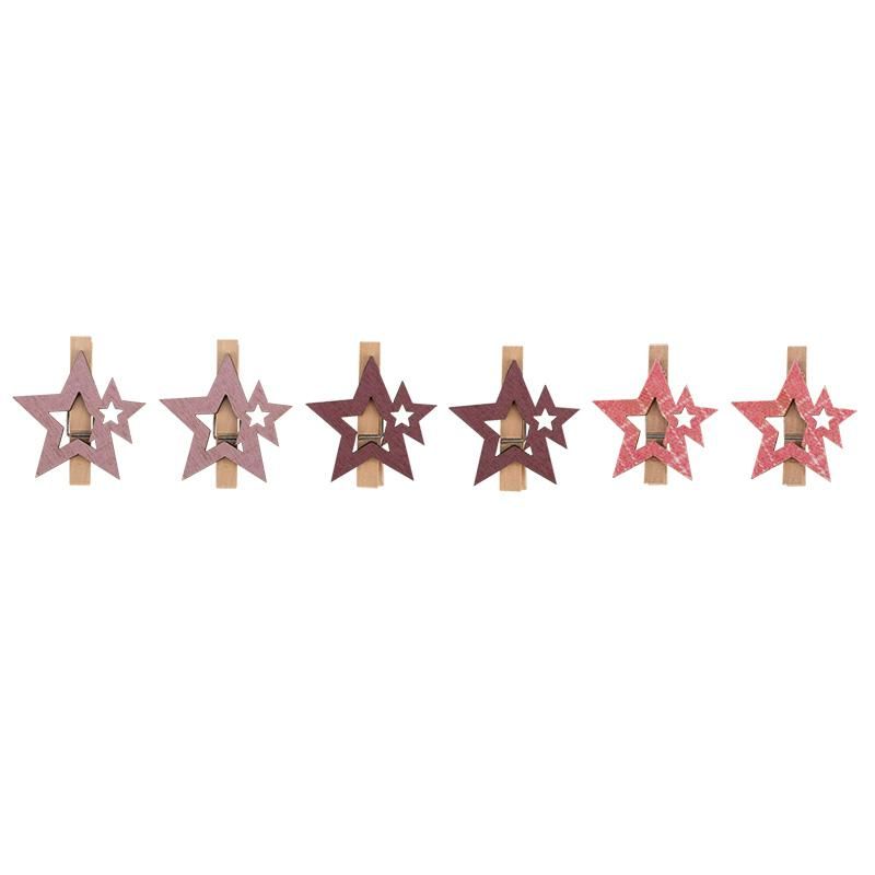 Деревянные домашние прищепки Звездочки 16x4.5x1.3 cм, розовые, 6 шт. NEON-NIGHT - 504-034