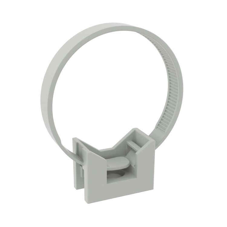 Держатель для труб с хомутиком диаметр 16–32 мм от DKC (ДКС) - надёжный крепёж из прочного пластика для фиксации гофрированных и жёстких труб серии Express в системах внутренней и наружной электропроводки. Артикул 51200 обеспечивает универсальное крепление при неизвестном точном диаметре трубы.