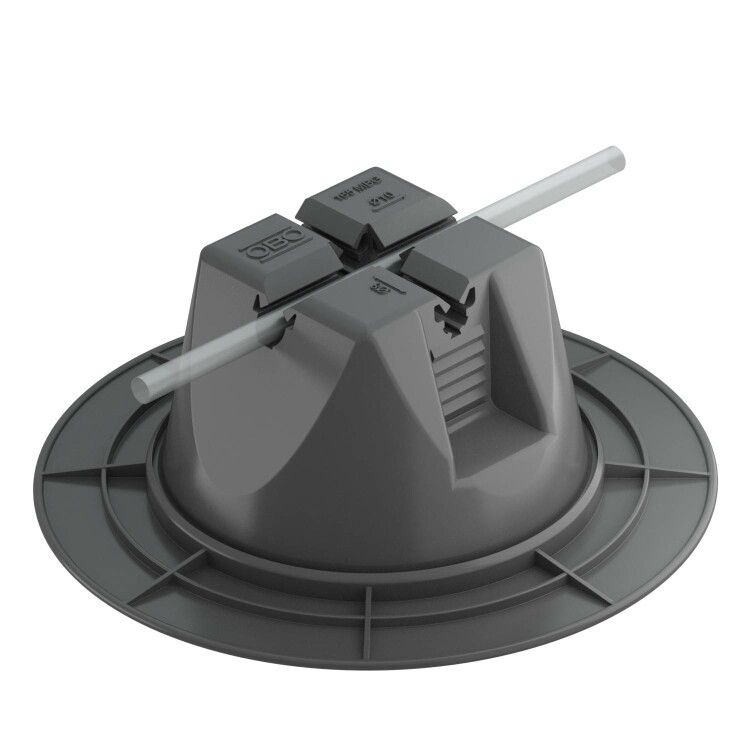 - При необходимости можно дополнительно зафиксировать держатель для плоской кровли OBO BETTERMANN 165 mbg-8-10 200 клеем на базе полиуретана, если есть риск смещения при сильном ветре