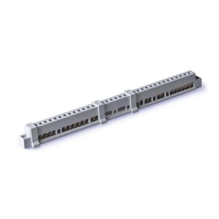 Держатель для шин пластиковый с двумя шинами на 24 подключения до 6 кв.мм используется для создания распределительной системы в электрощитах. Каждая из двух шин обеспечивает 12 точек подключения - всего 24 контакта. Подходит для подсоединения фазных, нулевых и защитных проводников в бытовых, коммерческих и промышленных установках. Часто применяется в щитах автоматического ввода резерва (АВР), системах освещения, управления насосами и вентиляцией.