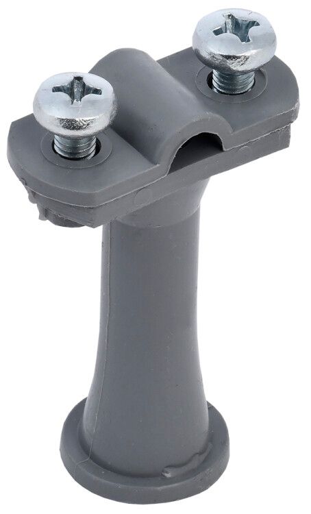 Держатель проводника круглого 6–10 мм h=59 мм пластик серый применяется исключительно для установки круглых проводников в системах внешней молниезащиты зданий. Он фиксирует токоотвод на стене, сохраняя заданное расстояние от поверхности - 59 мм - чтобы избежать пробоя через материал фасада и обеспечить безопасную токопроводящую цепь. Подходит для каменных, кирпичных и бетонных фасадов. Не предназначается для горизонтальной укладки или внутренних работ.