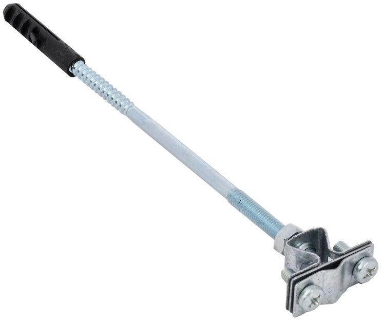 Держатель проводника круглого 8–10 мм для бетонного фасада оцинкованная сталь совместим со всеми типами круглых проводников указанного диапазона. Для монтажа требуется предварительно просверлить отверстие в бетоне подходящего диаметра под комплектный дюбель. После установки дюбеля вставьте шпильку держателя, затем затяните винты зажима вокруг проводника. Не используйте инструменты с высоким крутящим моментом - риск перегрузки винта и повреждения резьбы.