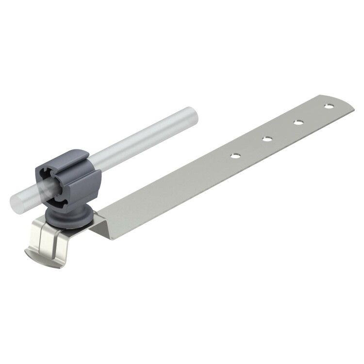 Держатель проволоки для черепичной кровли диаметром 8-10 мм, нержавеющая сталь V2A устанавливается непосредственно на поверхность кровли. Прижимная скoba плотно фиксирует провод, а форма корпуса адаптирована под профиль черепицы - не требует сверления или демонтажа плиток. Для установки достаточно совместить держатель с гребнем черепицы и закрепить его давлением. Отлично работает на мягкой и твердой черепице, шифере и аналогичных поверхностях.
