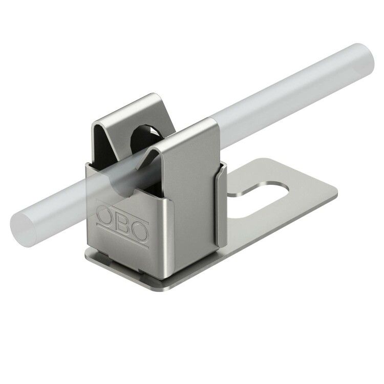 Держатель проволоки 8 мм для черепичной, шиферной и волнообразной кровли, нержавеющая сталь V2A, тип 159 VA-V от OBO BETTERMANN предназначен для надежного крепления молниеприёмной катанки или сетки на профилированных кровельных покрытиях. Артикул 159 VA-V обеспечивает устойчивую фиксацию даже на сложных поверхностях, сохраняя долговечность благодаря материалу V2A.