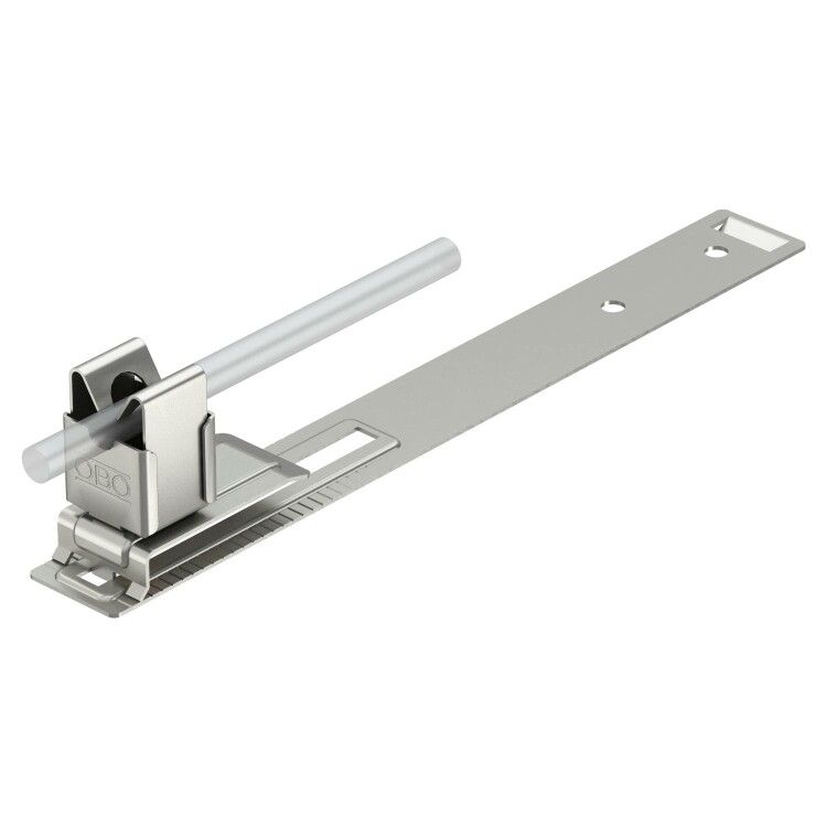 Держатель проволоки/прутка для шиферной кровли d8 от OBO BETTERMANN (артикул 157 L-VA) предназначен для надежного крепления металлических проводников на поверхности шиферной кровли, обеспечивая устойчивую фиксацию без повреждения покрытия.