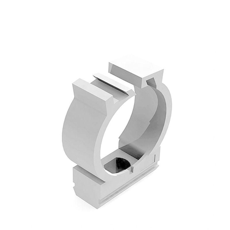 Держатель с фиксатором D20мм используется для фixации труб, шлангов или кабельных каналов диаметром 20 мм. Применяется там, где требуется компактное и прочное крепление - например, в распределительных щитах, на станках, в системах автоматизации, на конвейерах или в бытовых устройствах. Может использоваться как самостоятельный элемент или в составе нескольких держателей, соединённых в ряд.