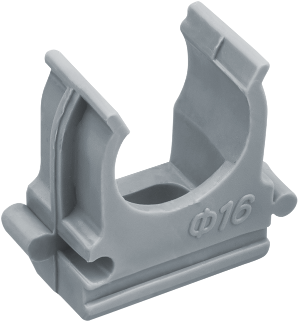 Держатель для труб с защелкой d16мм 61 228 NCR-T-16-B100 совместим с любыми трубами внешним диаметром 16 мм - ПВХ, полиэтилен, гофрированные рукава, медные и алюминиевые трубы малого диаметра. Для монтажа требуется предварительно просверлить отверстия в основе, затем закрутить саморезы (диаметр от 3 до 4 мм, длина 15–25 мм - зависит от материала стены). Защелка легко открывается для вставки трубы и плотно фиксирует её без дополнительного крепления. Элементы можно соединять друг с другом по боковым выступам - образуются цепочки или ряды, что ускоряет расстановку на длинных участках.